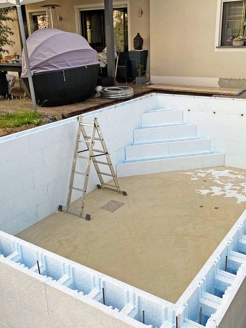 Styroporpool mit Ecktreppe & Sitzbank von Familie P., Neuried