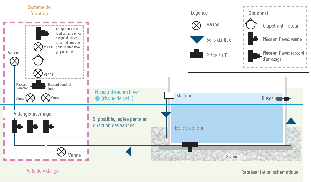 Les consignes suivantes s'appliquent dans le cas ou votre filtration est enterrée directement à côté du bassin, dans un local technique enterrable prévu à cet effet :