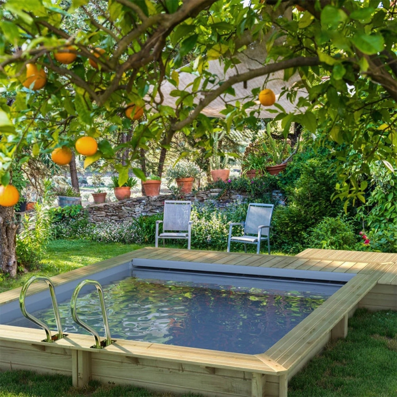 Piscine URBAINE bois carrée : 4 niveaux d'équipements