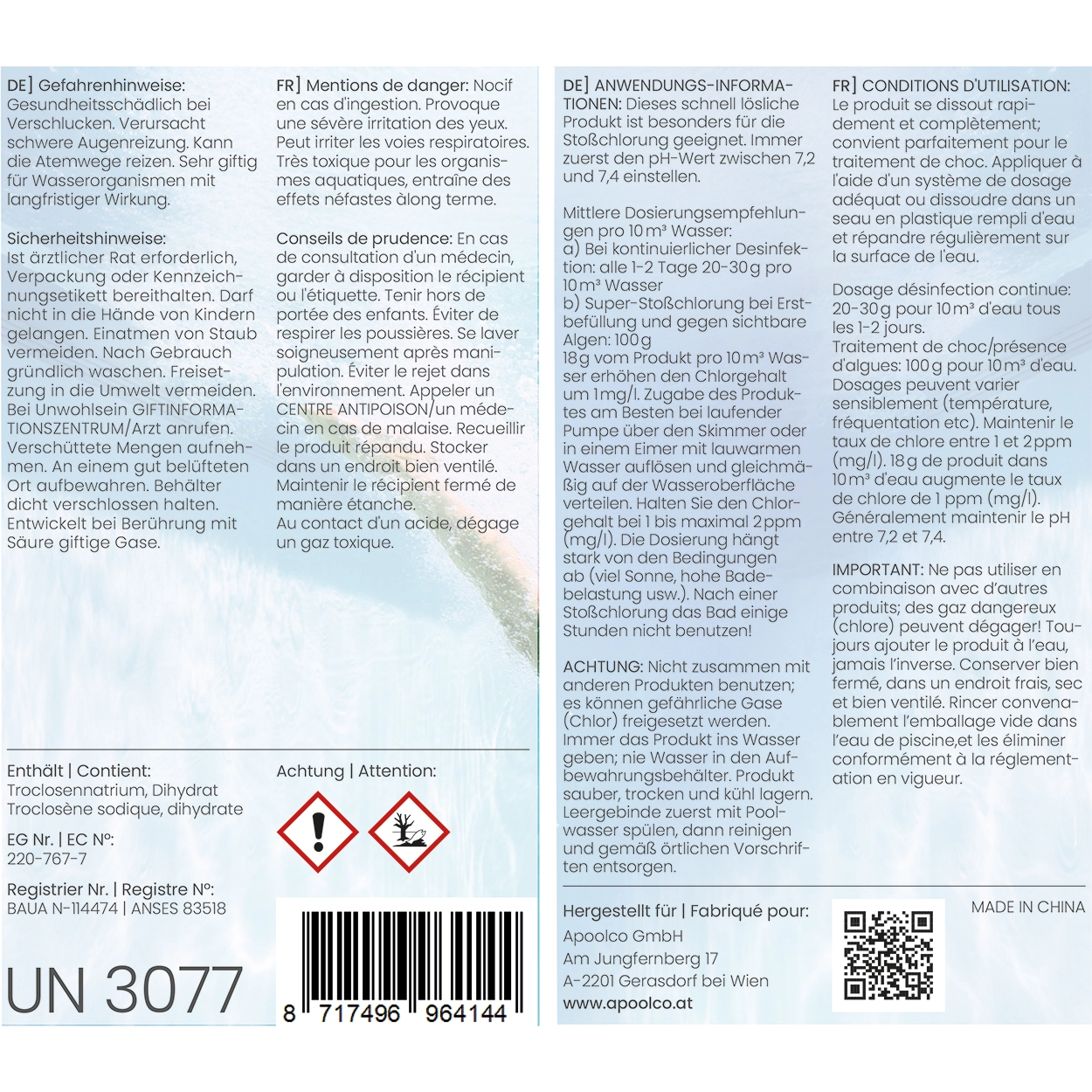 Chlore choc en granulés 1 kg, Apoolco